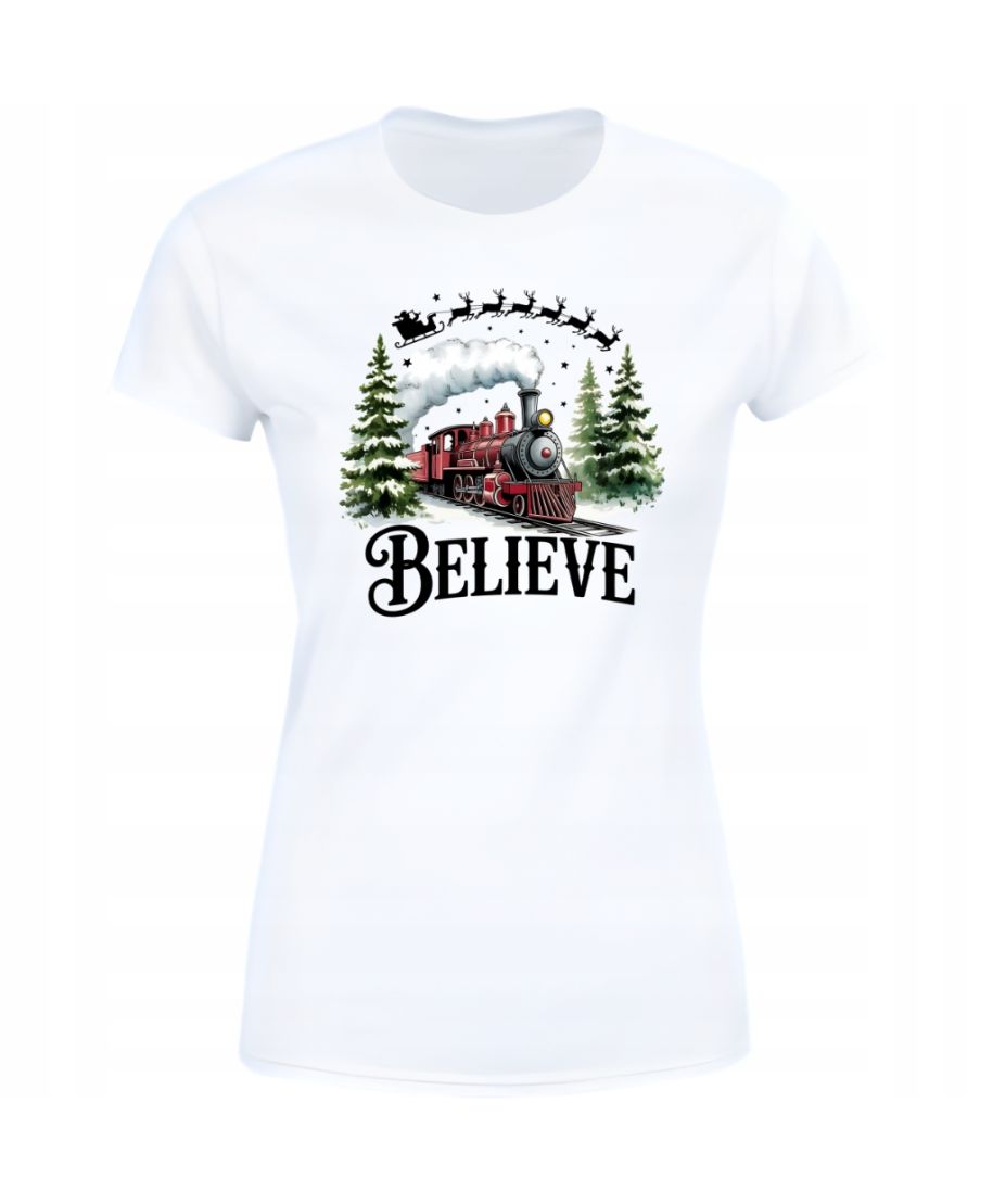 Koszulka damska Świąteczna „Believe” magiczny pociąg Mikołaja