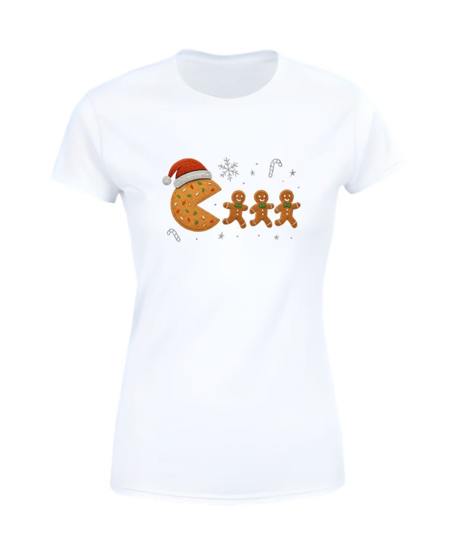 Koszulka damska Świąteczna Ciasteczkowy Pac-Man zabawny ciacho