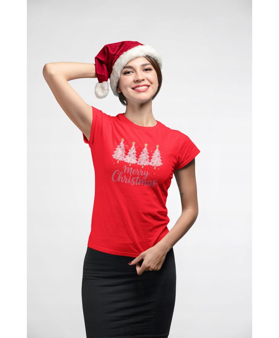 Koszulka damska Świąteczna Pink Christmas Trees różowa magia Świąt