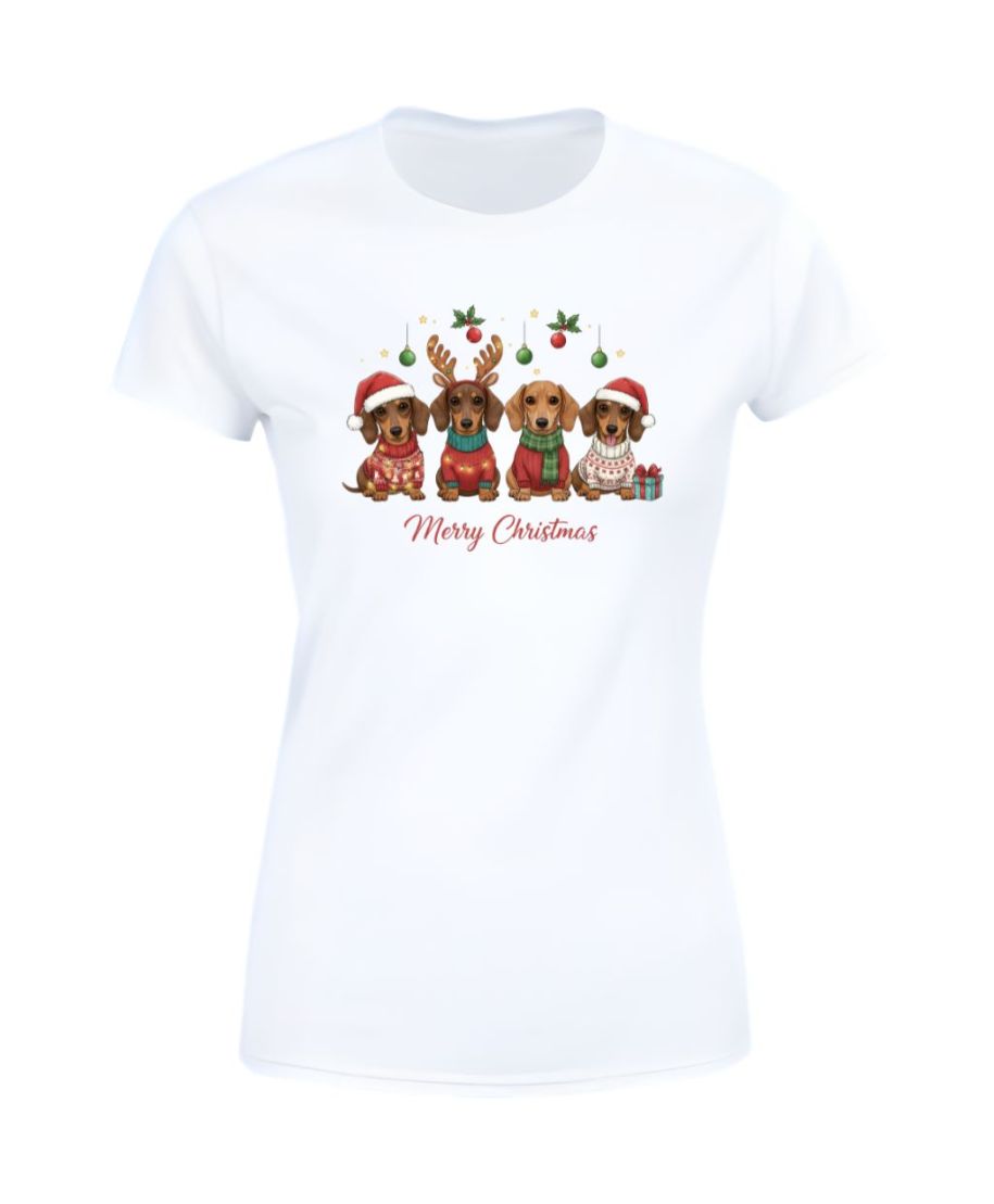 Koszulka damska Świąteczna z słodkimi jamnikami pieskami Merry Christmas
