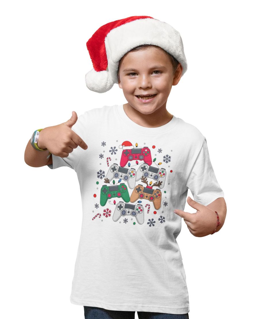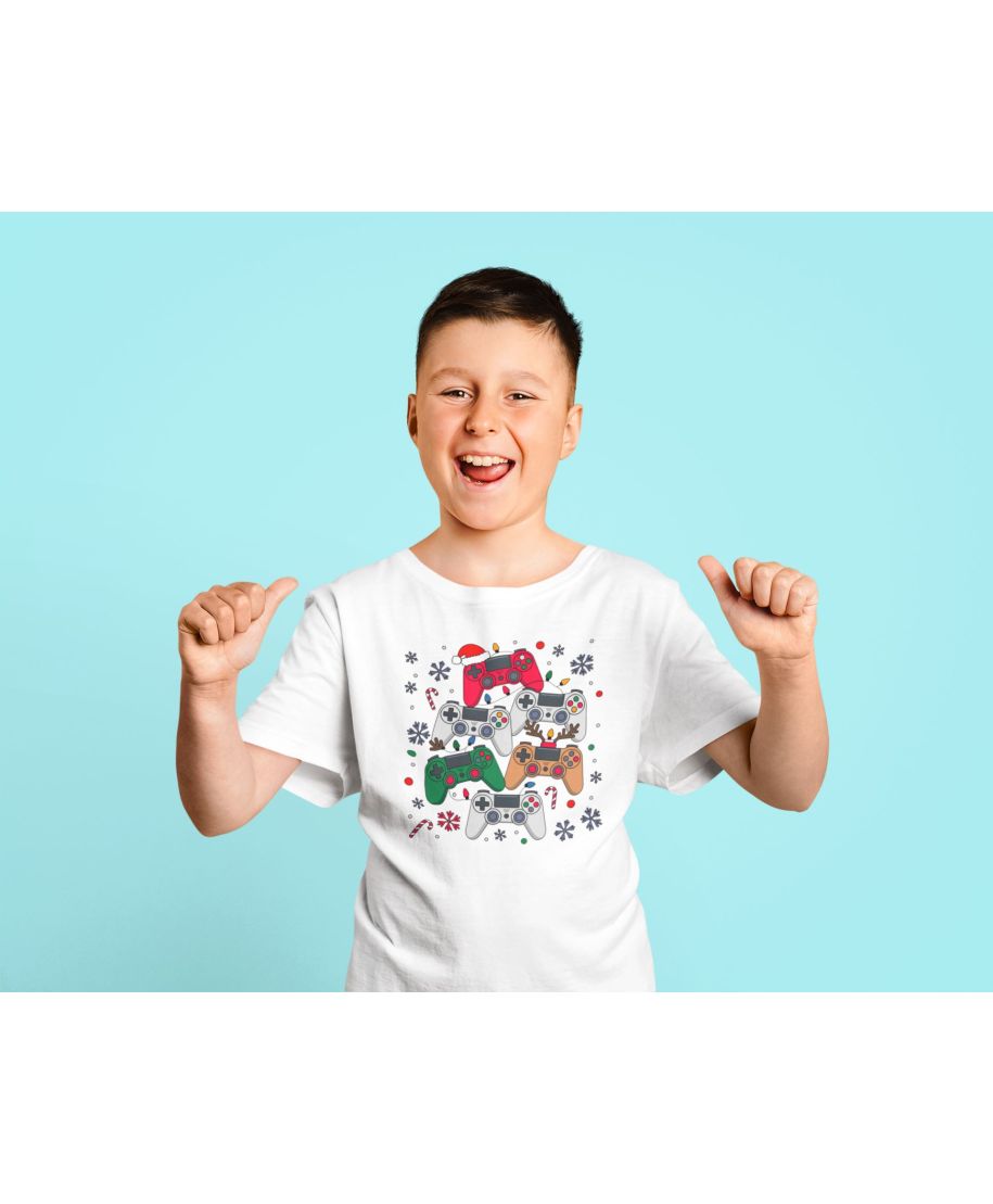 Koszulka dziecięca Świąteczna dla gracza „Gamer Christmas” Pady do gry