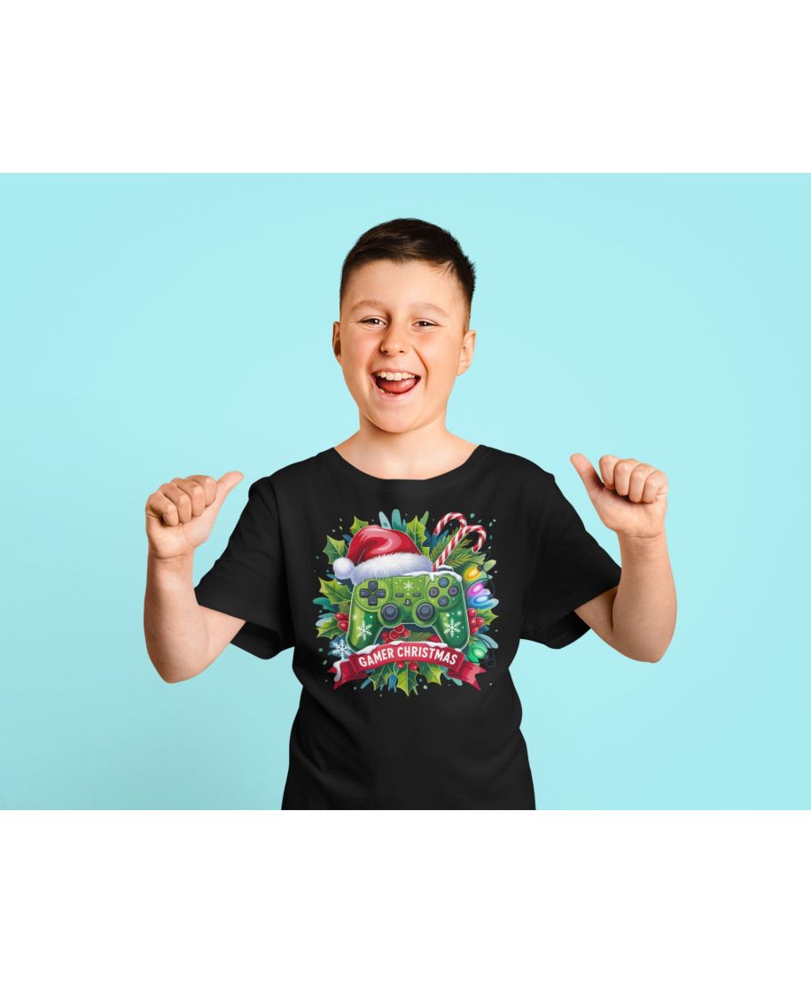 Koszulka dziecięca Świąteczna Gamer Christmas dla fanów gier Pad do gry