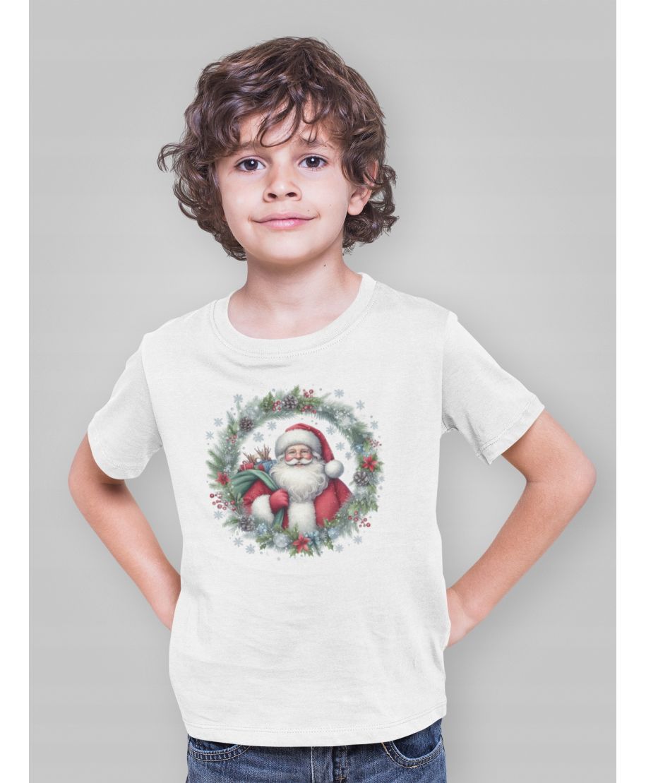 Koszulka dziecięca Świąteczna Mikołaj z wieńcem magia urok świąt