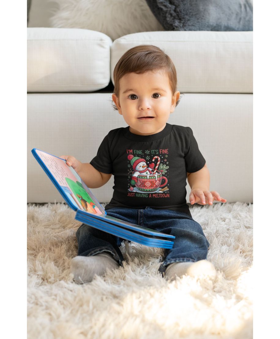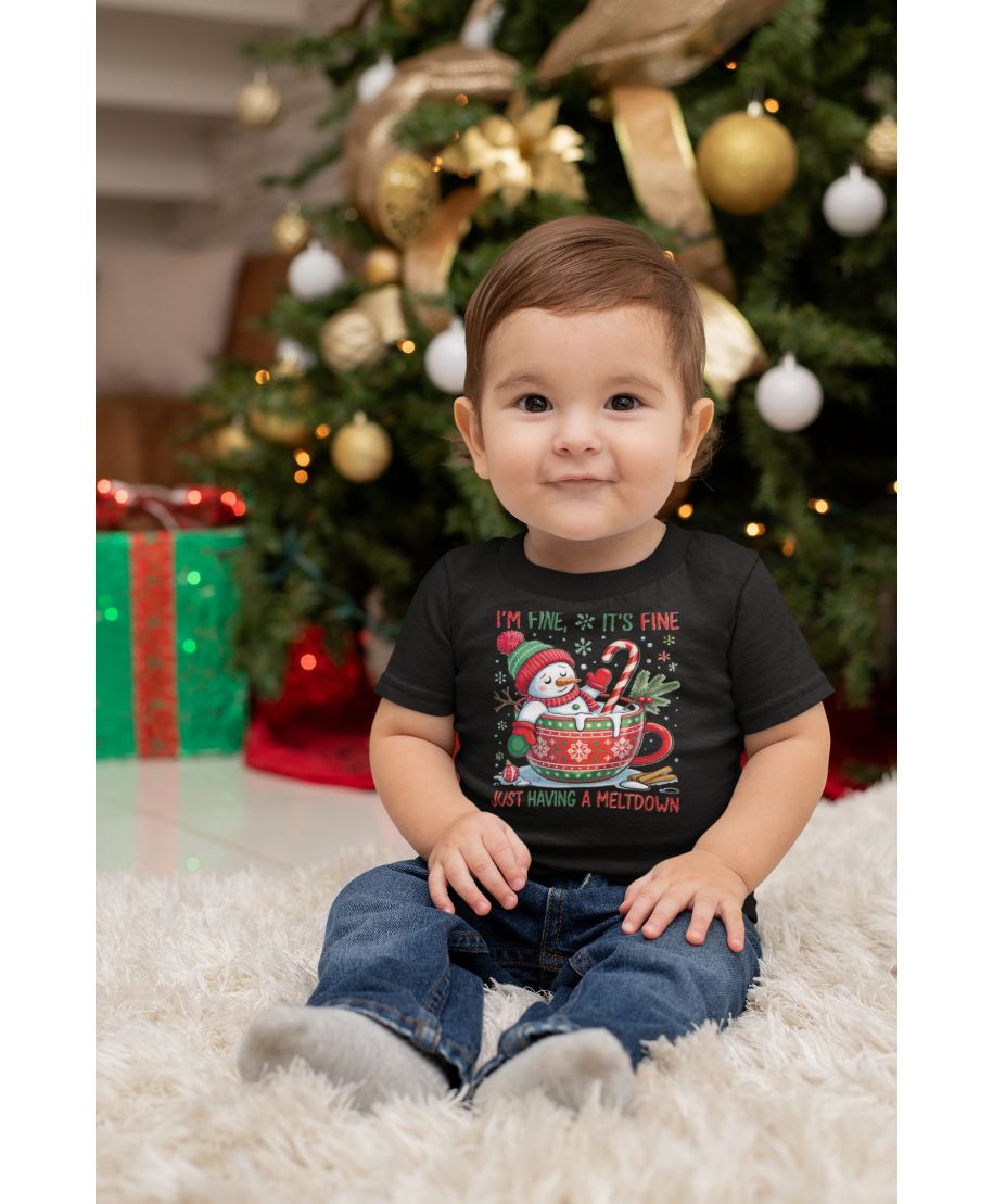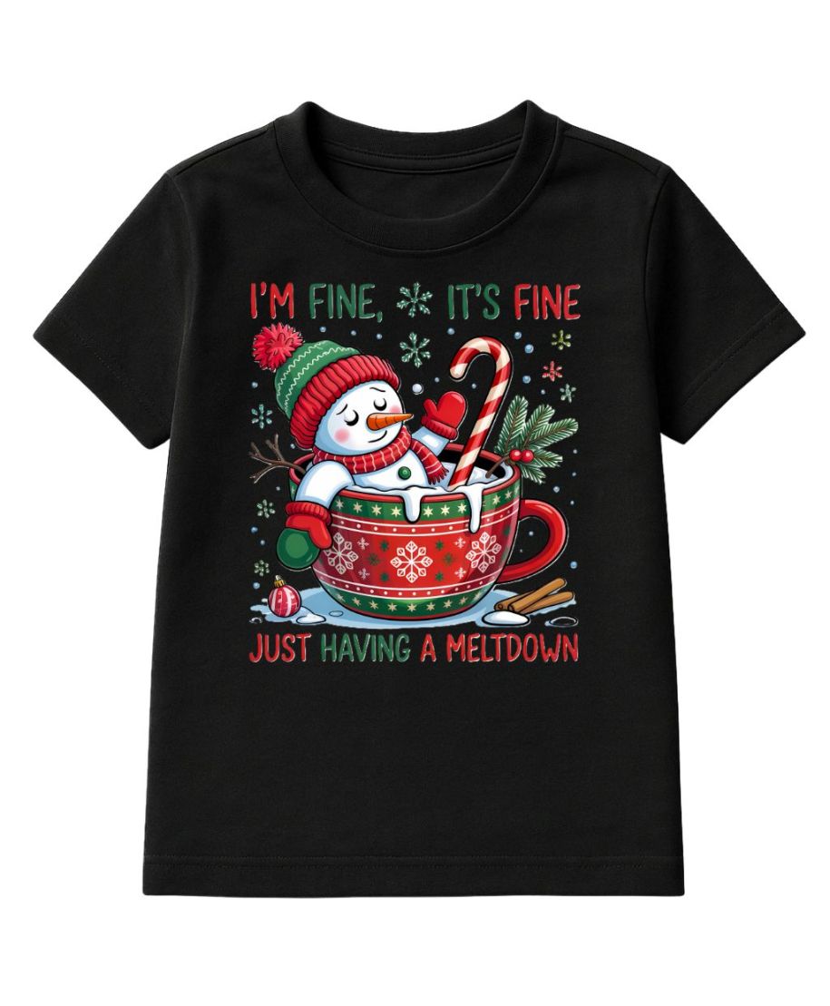 Koszulka dziecięca Świąteczna na Święta Bałwan w kubku I’m fine, it’s fine