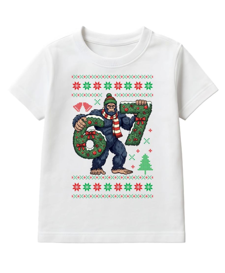 Koszulka dziecięca Świąteczna śmieszna Yeti Six Seven 6 7 ugly sweater
