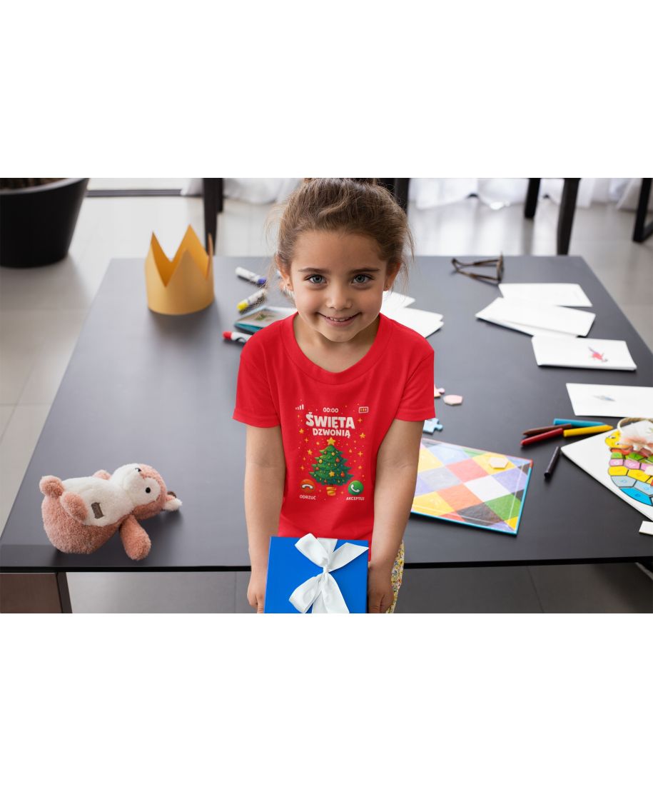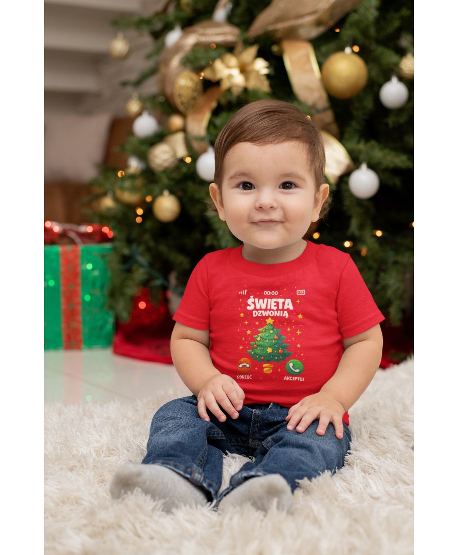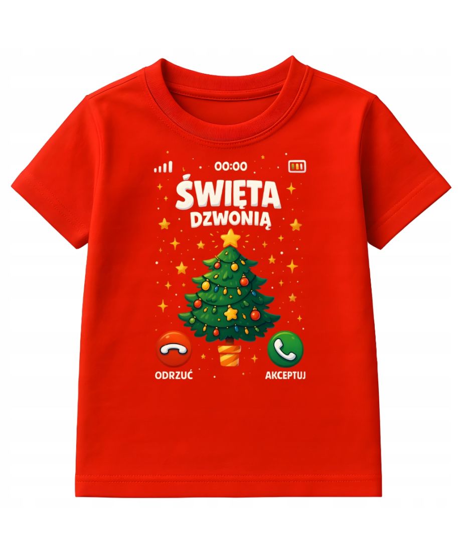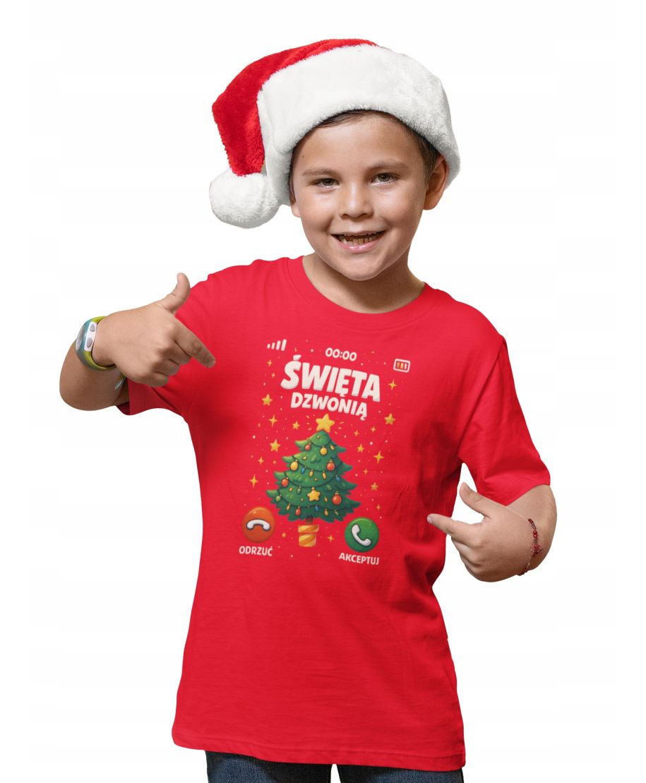 Koszulka dziecięca Świąteczna Święta dzwonią odbierz telefon od choinki