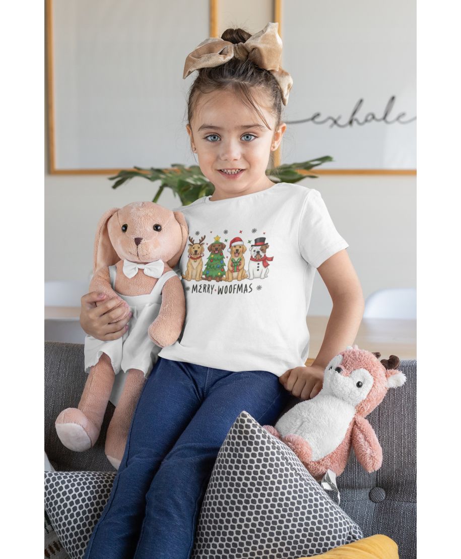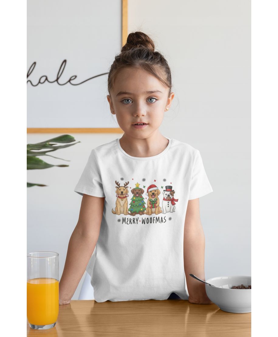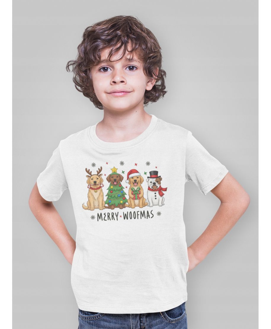 Koszulka dziecięca Świąteczna z pieskami świątecznymi Merry Woofmas
