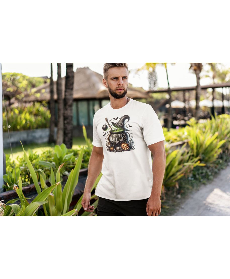 Koszulka męska Happy Halloween Kociołek Czarownicy dynie nietoperze