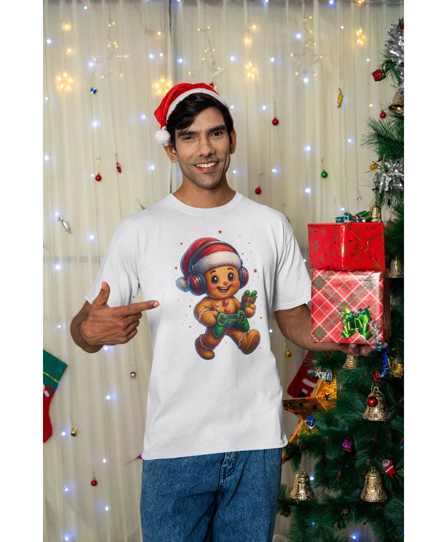 Koszulka męska Świąteczna piernik z konsolą świąteczny grający prezent