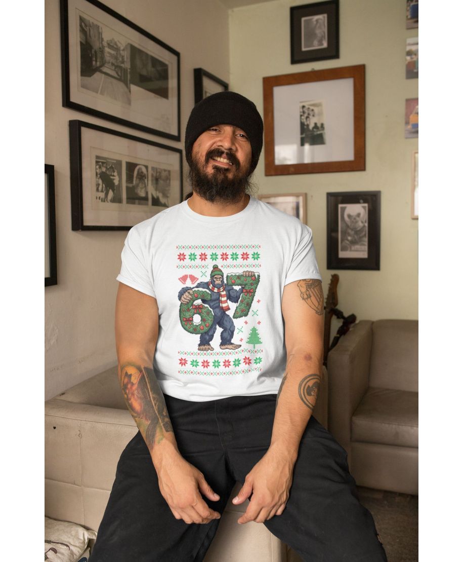 Koszulka męska Świąteczna śmieszna Yeti Six Seven 6 7 ugly sweater