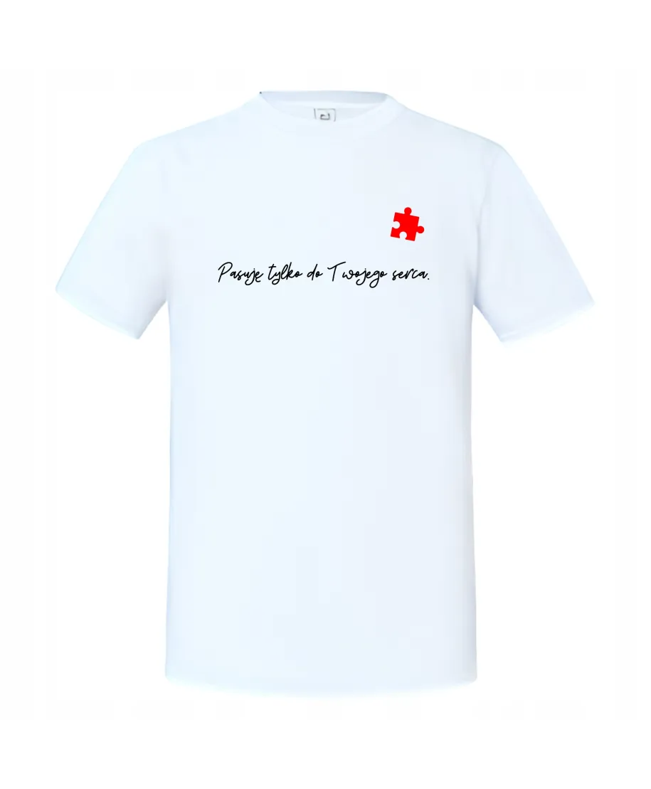 Ta koszulka doskonale komponuje się z wersją damską, na której znajduje się serce z brakującym elementem. Razem tworzycie świetny duet – Ty jesteś puzzlem, który uzupełnia jej serce!