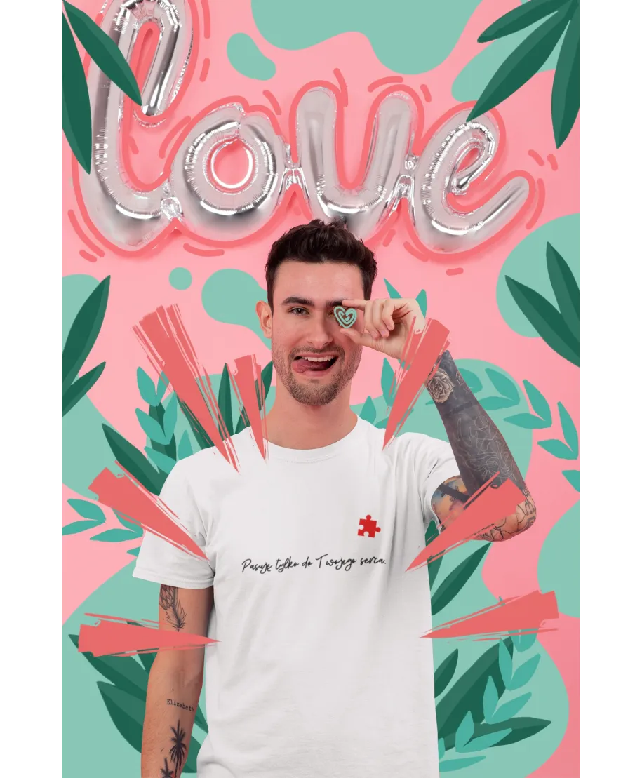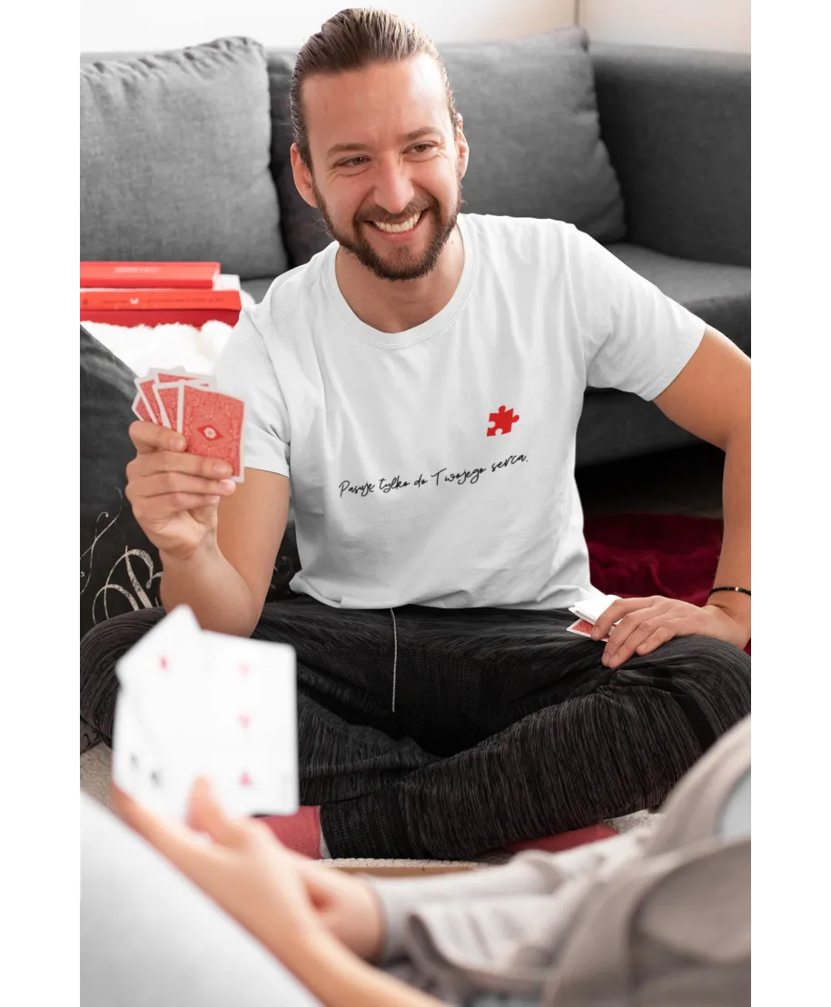 Koszulka męska Walentynki Puzzle – „Pasuję do Twojego serca” ♥ Prezent