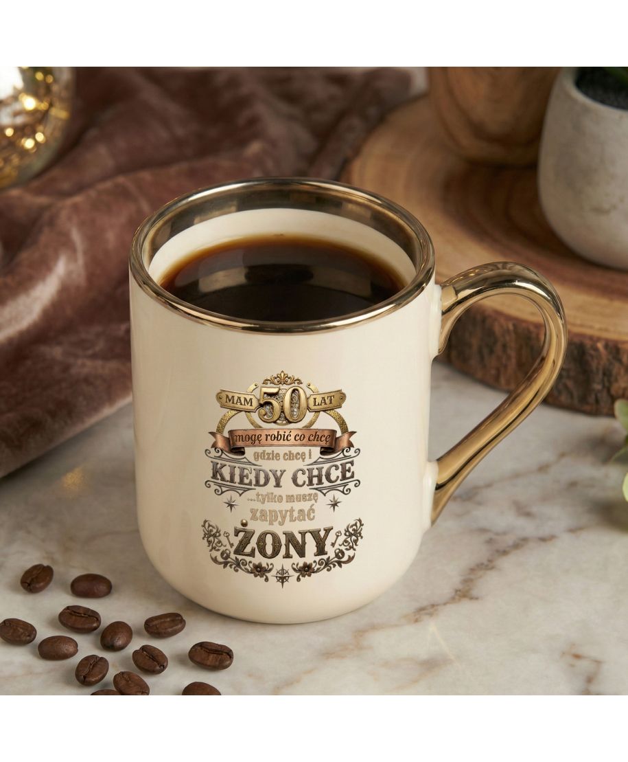 Kubek kremowy Mam 50 lat Mogę robić co chce na urodziny prezent śmieszny